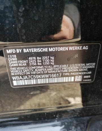 Each lot presented on our website contains complete information linked to the VIN code WBAJA7C59KWW16617. This allows users to verify vehicle data, confirm ownership history, and find information about insurance claims and accidents. The 2019 BMW 5 Series with the specified VIN code is registered in a major American insurance auction system, which guarantees complete transparency and traceability of all information regarding its history.