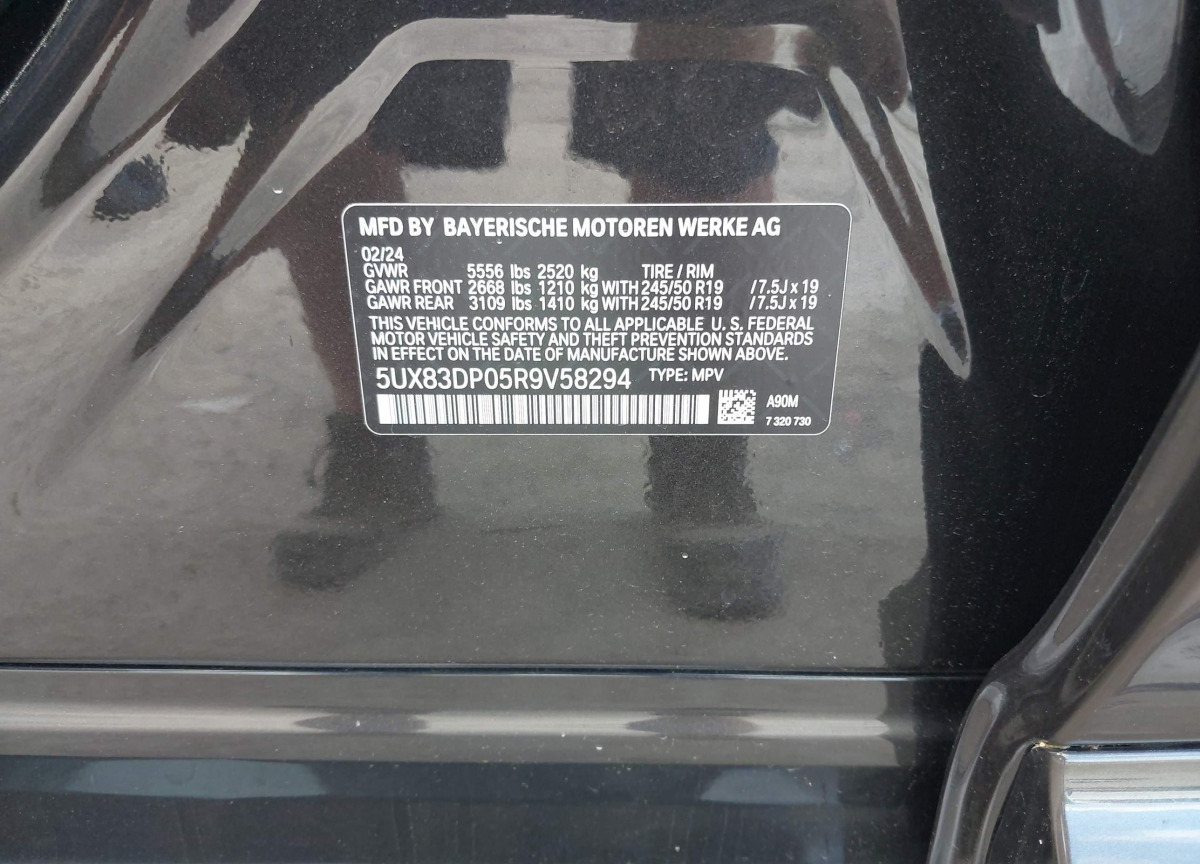2024 BMW X3 with VIN 5UX83DP05R9V58294 is a vehicle that has passed through the auction bidding process of a major insurance platform in the United States. Its auction sale history is completely traceable thanks to the unique VIN code, which allows verification of the vehicle's origin, technical condition, and circumstances that led to the lot being listed for auction. This page contains a comprehensive report on the vehicle's condition at the time of auction, including visual documentation and technical specifications.