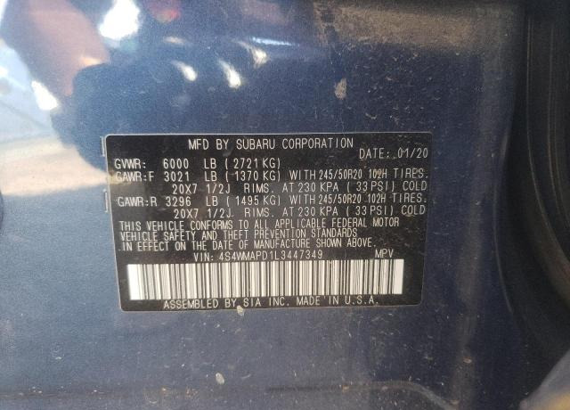 Each lot presented on our website contains complete information linked to the VIN code 4S4WMAPD1L3447349. This allows users to verify vehicle data, confirm ownership history, and find information about insurance claims and accidents. The 2020 Subaru Ascent with the specified VIN code is registered in a major American insurance auction system, which guarantees complete transparency and traceability of all information regarding its history.