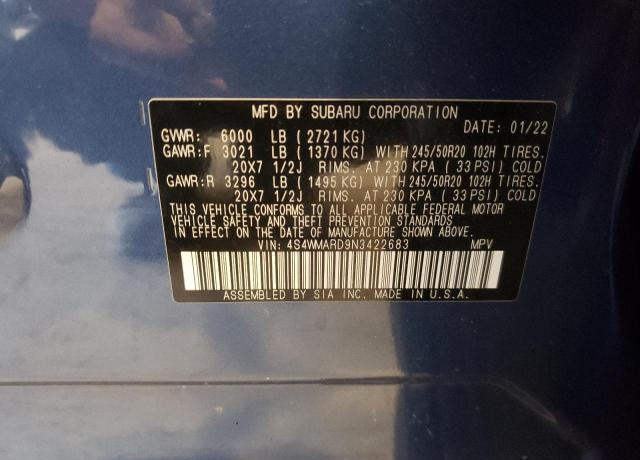 2022 Subaru Ascent with VIN 4S4WMARD9N3422683 is a vehicle that has passed through the auction bidding process of a major insurance platform in the United States. Its auction sale history is completely traceable thanks to the unique VIN code, which allows verification of the vehicle's origin, technical condition, and circumstances that led to the lot being listed for auction. This page contains a comprehensive report on the vehicle's condition at the time of auction, including visual documentation and technical specifications.