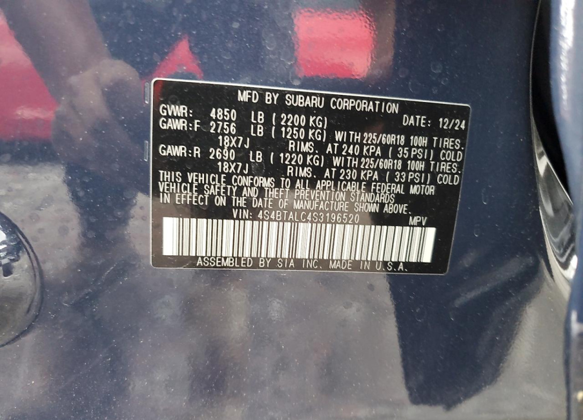 Each lot presented on our website contains complete information linked to the VIN code 4S4BTALC4S3196520. This allows users to verify vehicle data, confirm ownership history, and find information about insurance claims and accidents. The 2025 Subaru Outback with the specified VIN code is registered in a major American insurance auction system, which guarantees complete transparency and traceability of all information regarding its history.